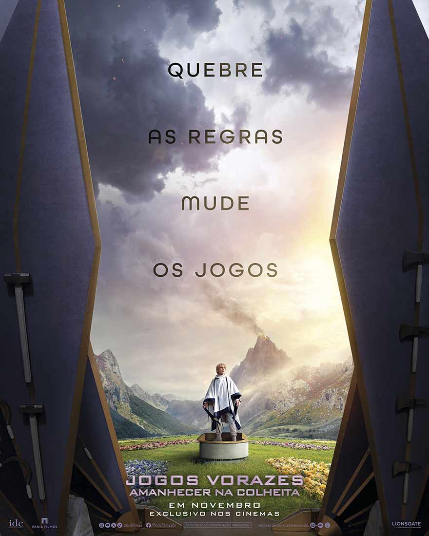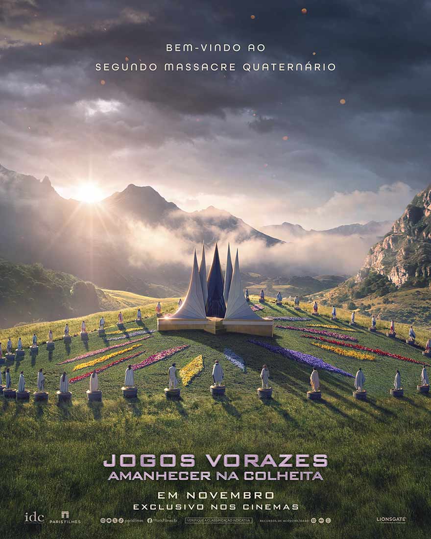 A Paris Filmes acaba de divulgar um novo cartaz de “Jogos Vorazes – Amanhecer na Colheita” (The Hunger Games: Sunrise On The Reaping), nova distopia da série de sucesso que já levou milhões de pessoas aos cinemas, e o primeiro trailer completo. A produção estreia em 19 de novembro de 2026 nos cinemas brasileiros.